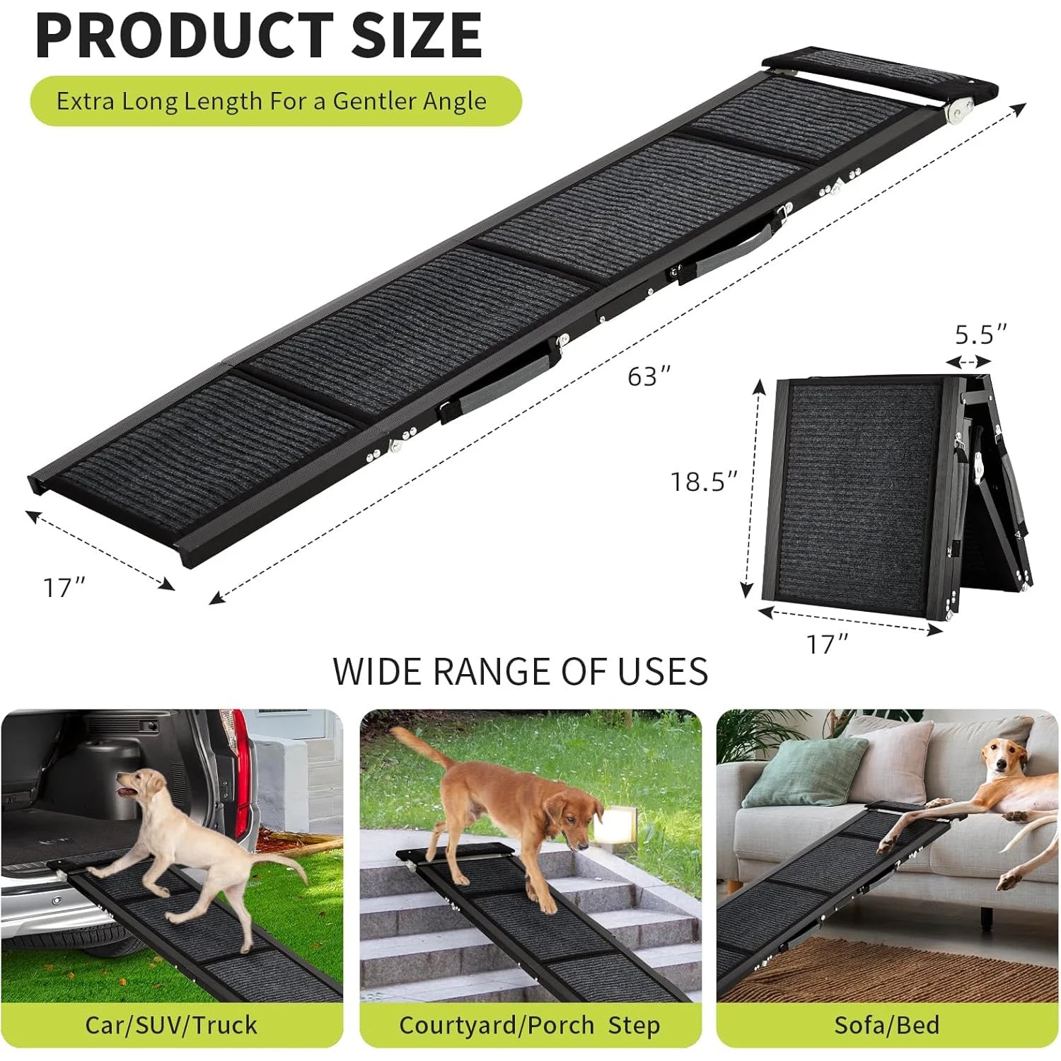 Upgraded Dog Ramp For Cars Folding Pet Ramp For Large Dogs With Non-Slip Surface Portable Outdoor Dog Car Ramp Up to 250 LBS