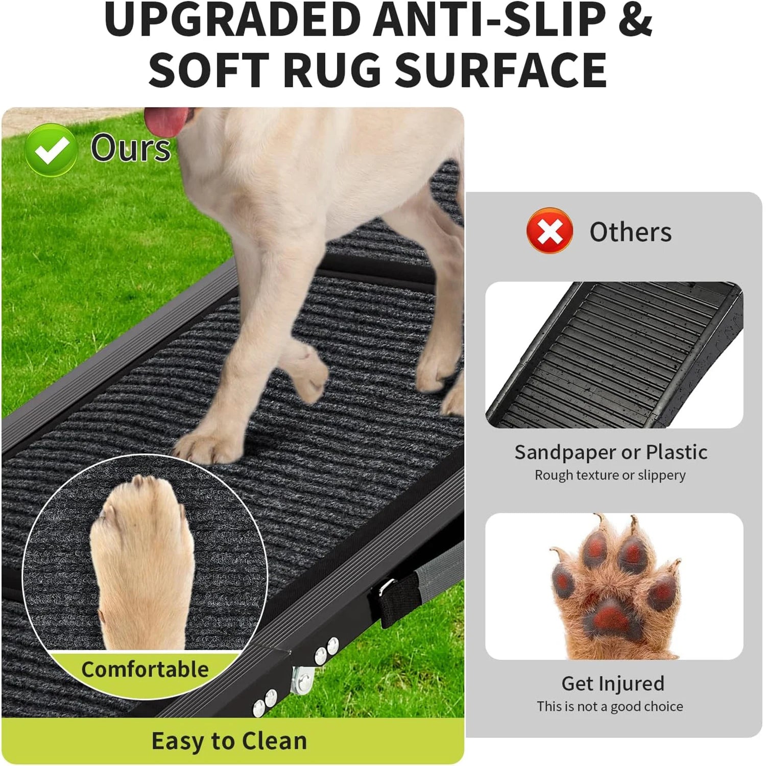 🐕Upgraded Quad Fold Half Design:Unlike other dog car ramps on the market that can only be folded in two or three, our dog ramp can be folded in four and the upgrade placed on the car adds a half section to make the ramp more stable and safer for dogs to get on and off. the dog ramp stairs are perfect for dogs to get into cars, suvs, trucks, high beds and couches.